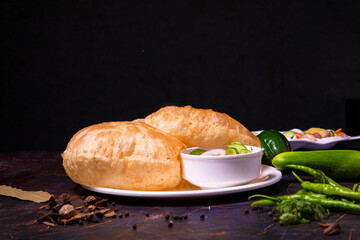 Homemade Puri Chole or Chhole Bhature traditional Indian punjabi food