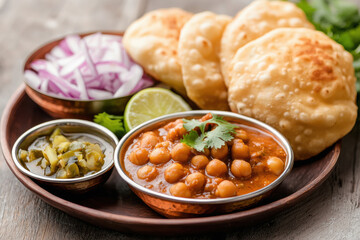 Chole Bhature stock photo with a focus on presentation, showcasing the delectable combination of spicy chickpeas and fluffy fried bread
