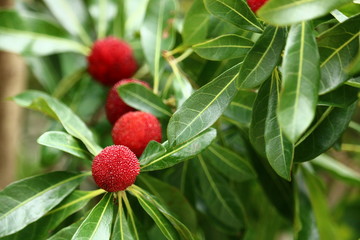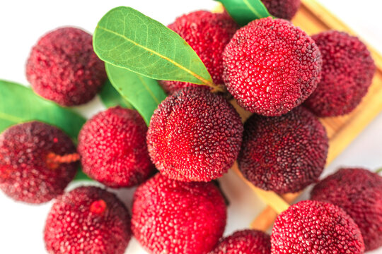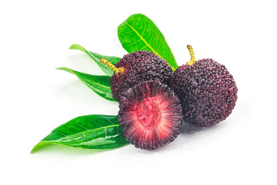Vibrant red bayberry fruit isolated on clean white background sweet tart antioxidant berry concept