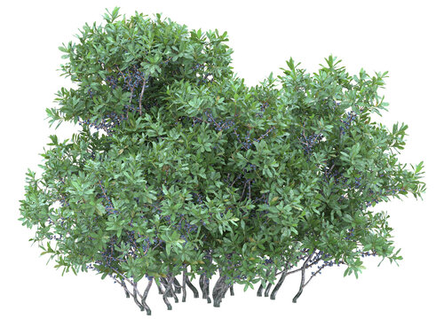 Myrica pensylvanica or northern bayberry green plant in sunlight