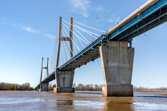 Bayview Bridge connecting Quincy Illinois and West Quincy Iowa over the Mississippi River via US Route 24 in Spring