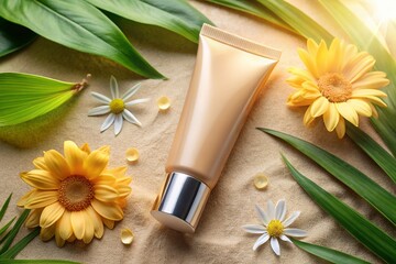 Cosmetic smear of cream texture on a beige background. Toning cream for the skin. Skin care.