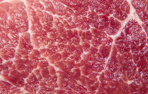 flat lay of raw beef steaks arranged in a repeating pattern on a beige background