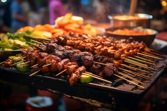 Delicious stick of roasted grill on street market. Cebu. Philippines.