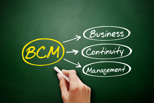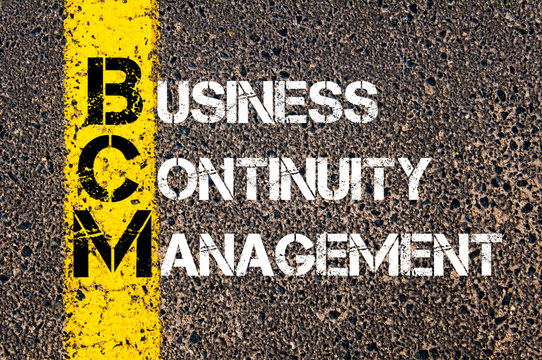 Stickers on notebook text BUSINESS CONTINUITY with pen and glasses on white background