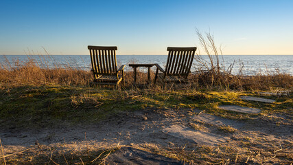 Wooden Bench on Hov Beach, Vestvagoy, Lofoten Islands, Norway