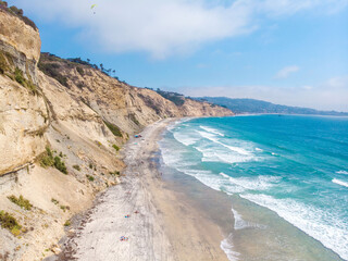 Aerial view of shipwreck beach with pristine sand and clear blue waters