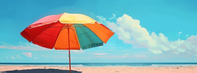 Capture the essence of summer with a vibrant, digital rendering of a beach umbrella clipart in a frontal view Use vivid colors and detailed shading to bring the shade to life