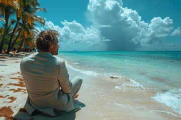 Man contemplating the ocean: A silhouette of a man stands on the beach, gazing at the tumultuous ocean beneath a dramatic, storm-laden sky. A testament to solitude and contemplation.