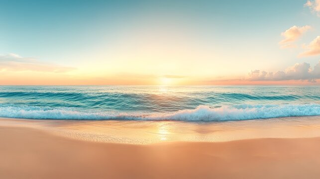Golden sunset hues over ocean waves, serene beach landscape