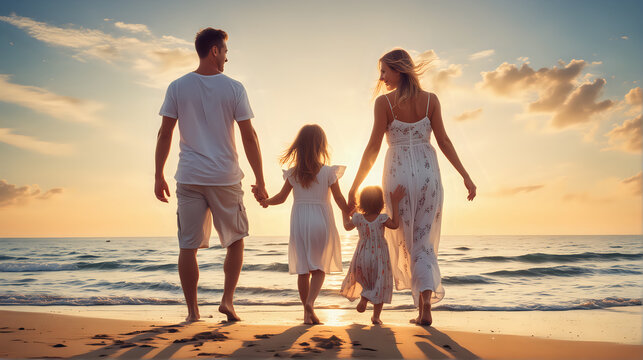 Couple holding hands on scenic beach with palm shadows
