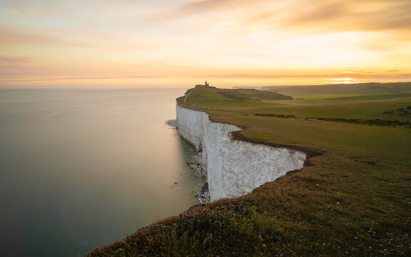 Beachy head lighthouse viewed from the top of beach head cliff. Eastbourne, United Kingdom.