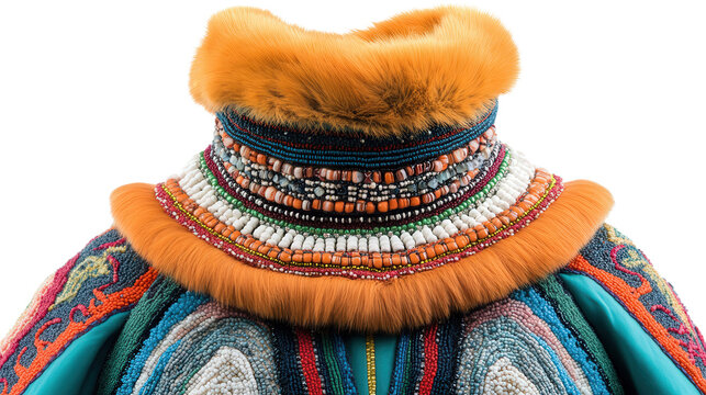 A detailed beadwork piece by an Indigenous artist colorful beads