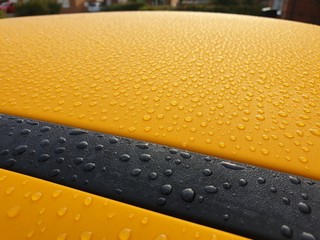 Beading water on yellow car