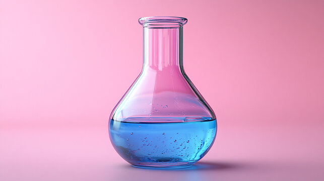 Erlenmeyer flask with clear liquid in laboratory setting