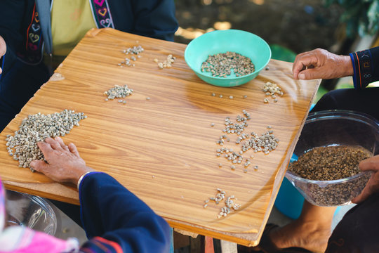 background coffee bean sorting process arabica coffee bean sorting concept hand harvest