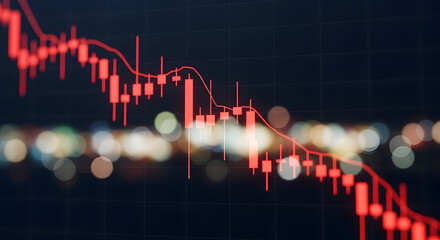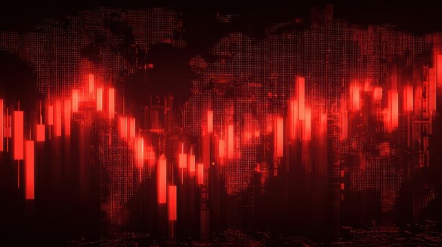 Abstract illustration of a stock market graph with red candlesticks on a digital background representing financial trends.