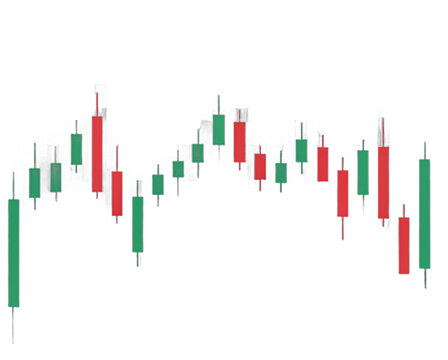 Forex trading candlestick chart pattern showing market volatility and trends transparent background