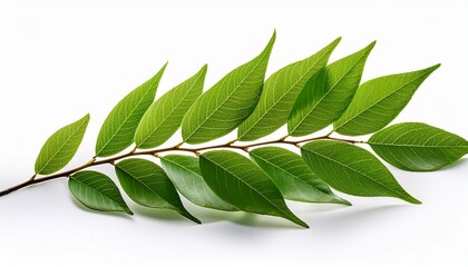 beautifu twig with green leaves isolated on white or transparent background