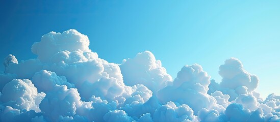 Cumulus clouds create a picturesque scene against a clear blue sky in this natural background image with copy space