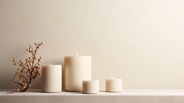 a modern, minimalist holiday decor with candles as part of the decor.candles can add a touch of warmth and elegance to a minimalist holiday setting.