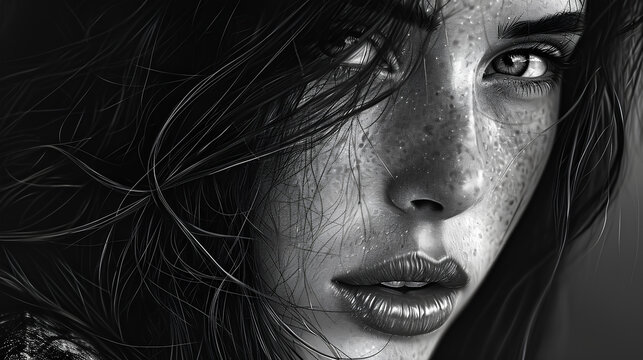 The girl pencil drawing. A charcoal drawing. Black-and-white portrait of a girl. Fashion. Beautiful portrait of a girl.