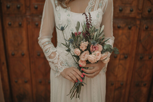 Sunlit cupped female hands catching warm golden light over flowing lace dress
