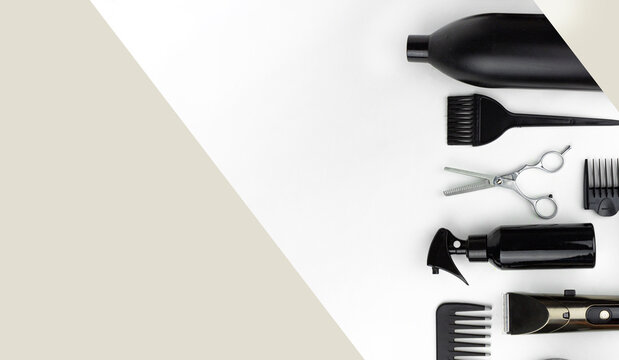 Different hairdressing tools on table in beauty salon