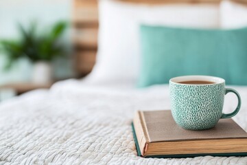 A Cup Of Herbal Tea On A Bedside Table Next To A Calming Book. The Soothing Drink Encourages Relaxation Before Sleep