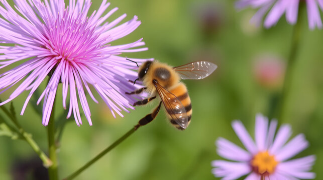 Bee collecting pollen from purple flower