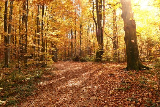 Autumn morning in old forest