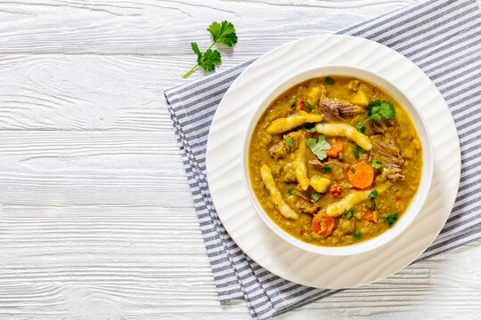 gungo peas soup with dumplings, veggies and beef