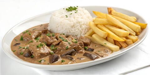 Indulge in the irresistible aroma and visual appeal of beef stroganoff with veal strips, porcini