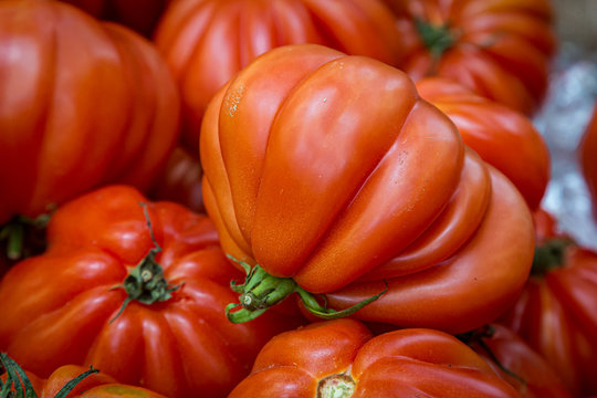 Fresh ripe red beefsteak or coeur de boeuf tomatoes
