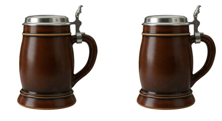 Two Brown Beer Stein Mugs Traditional German Oktoberfest Drink Still