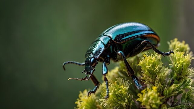 Female rhinoceros beetles, Hornless Female rhinoceros beetles Insects sitting on a branch, close-up, macro