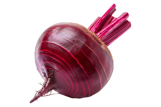 Woman farmer in denim overalls holding freshly dug red beets with stem in the field close up
