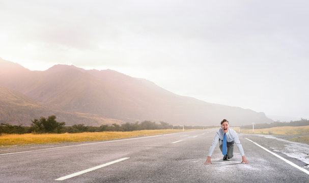 Runner climbing hill at dawn with neon triangle overlay, futuristic fitness motion