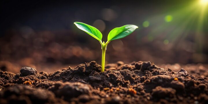 Small green sprout breaking through dark soil, symbolizing growth and perseverance, growth, green, sprout, soil, nature, plant