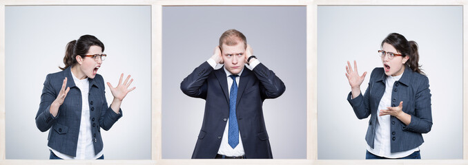 Man in suit got up from wheelchair, girl in shock. Communicate correctly with others and deal with sad thoughts. Behave correctly in different situations. Achieve what is supposed to be