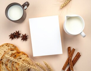mockup image:  set of blank cafe items( coffee cup, paper shopper bag, business card) with modern minimalist natural beige background. best use for branding and building a visual identity for cafe,