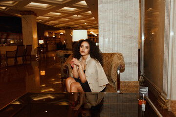 minimalist loft home interior design of modern industrial style living room with a concrete wall deep blue velvet sofa and beige boucle chairs