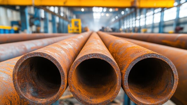 Rusty pipes being cleaned and repaired Concept, Removing Rust from Industrial Pipes Through Sandblasting in a Factory Environment
