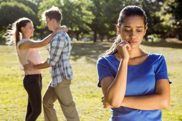 Man being unfaithful in the park