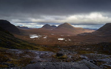 Views of Ceann Beag and Beinn an Eoin from below the summit of Sail Mhor near Torridon in the Scottish Highlands
