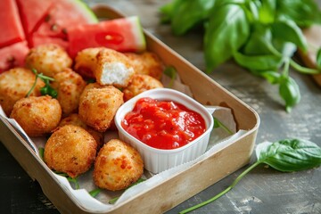 Potato and tomato nuggets with watermelon for kindergarten lunch box Focus on simplicity and minimal distractions