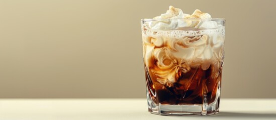 Detailed Close Up of White Russian Cocktail with Space for Text