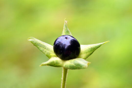 Detail of a ripe and isolated belladonna fruit (Atropa belladonna) on a green background