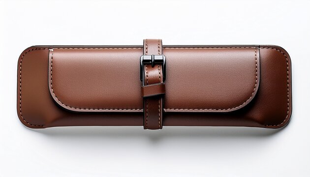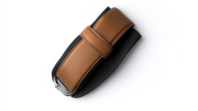 Close-Up of a Brown Leather Belt with Black Strap on Isolated White Background. Generative AI