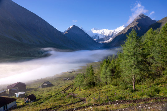 cloud caught on top of the mountain, Ukok Plateau, Altai Mountain